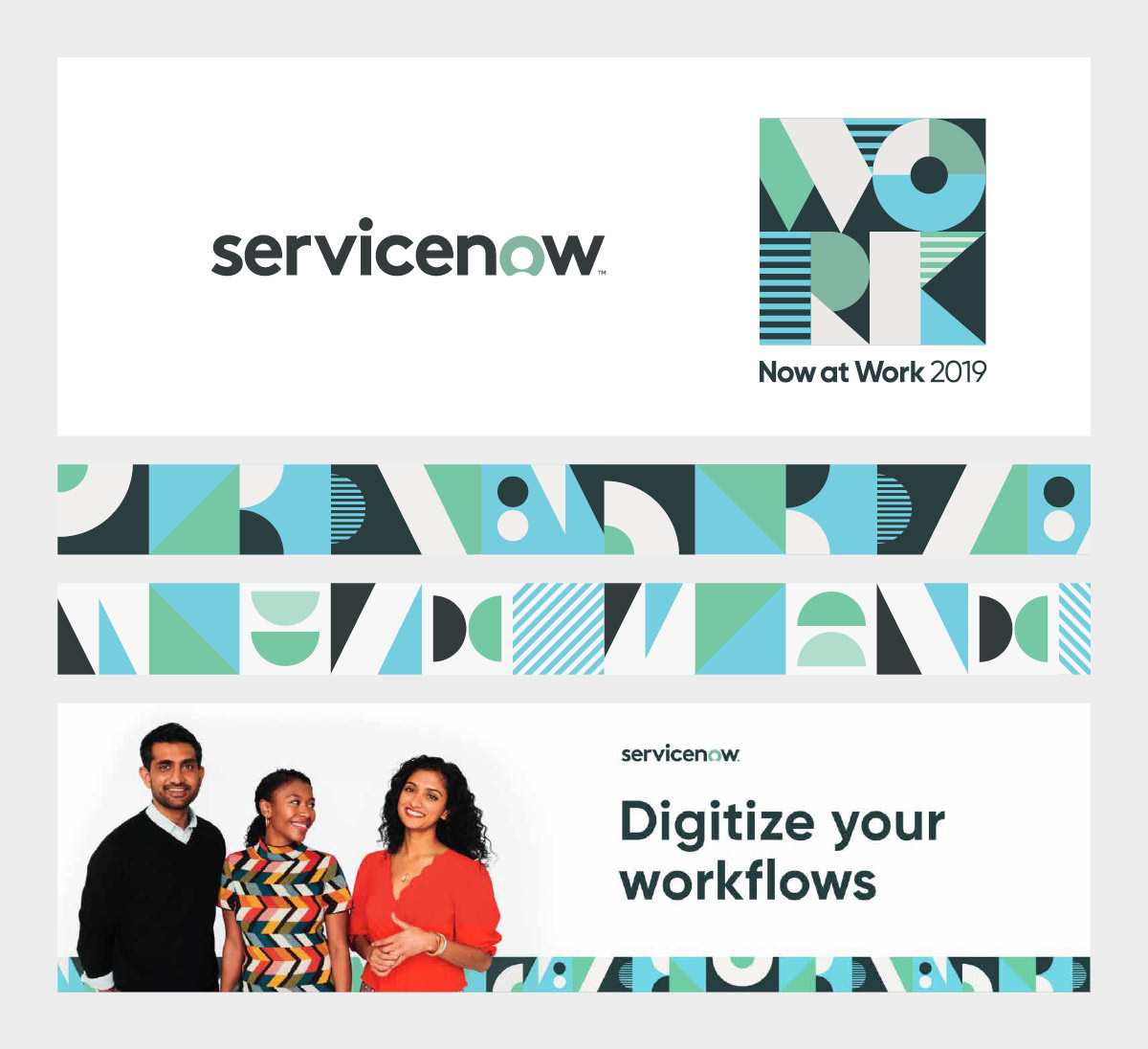 Service Now's global event series for Now at Work 2019. Executed directional signage, wayfinding, hanging banners, column wraps, digital and booth graphics across five U.S. cities.